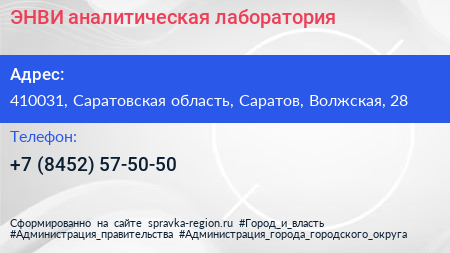 ЭНВИ, аналитическая лаборатория по адресу 410031, Саратовская область, Саратов, Волжская, 28 в дальнейшем Организация, размещена в следующих категориях: