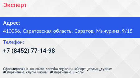 Эксперт по адресу 410056, Саратовская область, Саратов, Мичурина, 9/15 в дальнейшем Организация, размещена в следующих категориях: