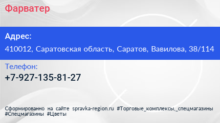 Фарватер по адресу 410012, Саратовская область, Саратов, Вавилова, 38/114 в дальнейшем Организация, размещена в следующих категориях: