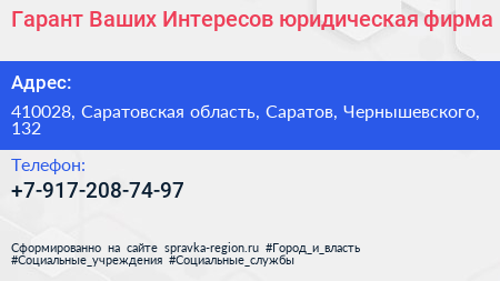 Гарант Ваших Интересов, юридическая фирма по адресу 410028, Саратовская область, Саратов, Чернышевского, 132 в дальнейшем Организация, размещена в следующих категориях: