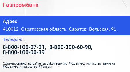 Газпромбанк по адресу 410012, Саратовская область, Саратов, Вольская, 91 в дальнейшем Организация, размещена в следующих категориях: