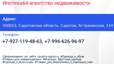 Ипотека64, агентство недвижимости по адресу 410012, Саратовская область, Саратов, Астраханская, 114 в дальнейшем Организация, размещена в следующих категориях: