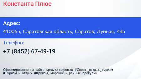 Константа Плюс по адресу 410065, Саратовская область, Саратов, Лунная, 44а в дальнейшем Организация, размещена в следующих категориях: