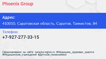 Phoenix Group по адресу 410010, Саратовская область, Саратов, Танкистов, 84 в дальнейшем Организация, размещена в следующих категориях: