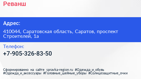 Реванш по адресу 410044, Саратовская область, Саратов, проспект Строителей, 1а в дальнейшем Организация, размещена в следующих категориях: