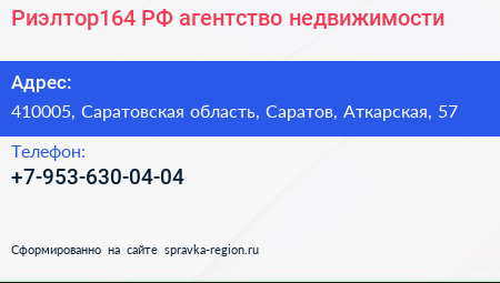 Риэлтор164.РФ, агентство недвижимости по адресу 410005, Саратовская область, Саратов, Аткарская, 57 в дальнейшем Организация, размещена в следующих категориях: