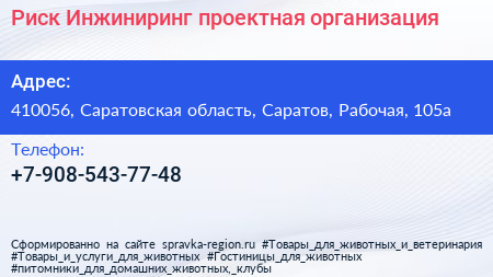 Риск-Инжиниринг, проектная организация по адресу 410056, Саратовская область, Саратов, Рабочая, 105а в дальнейшем Организация, размещена в следующих категориях: