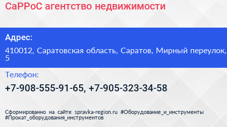 СаРРоС, агентство недвижимости по адресу 410012, Саратовская область, Саратов, Мирный переулок, 5 в дальнейшем Организация, размещена в следующих категориях: