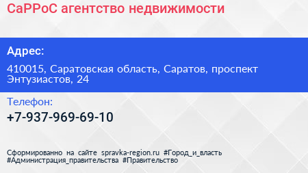 СаРРоС, агентство недвижимости по адресу 410015, Саратовская область, Саратов, проспект Энтузиастов, 24 в дальнейшем Организация, размещена в следующих категориях: