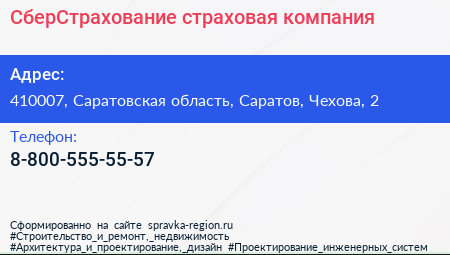 СберСтрахование, страховая компания по адресу 410007, Саратовская область, Саратов, Чехова, 2 в дальнейшем Организация, размещена в следующих категориях: