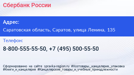 Сбербанк России по адресу Саратовская область, Саратов, улица Ленина, 135 в дальнейшем Организация, размещена в следующих категориях: