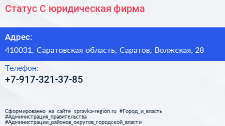 Статус-С, юридическая фирма по адресу 410031, Саратовская область, Саратов, Волжская, 28 в дальнейшем Организация, размещена в следующих категориях: