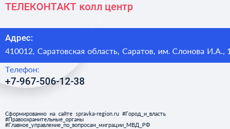 ТЕЛЕКОНТАКТ, колл-центр по адресу 410012, Саратовская область, Саратов, им. Слонова И.А., 1 в дальнейшем Организация, размещена в следующих категориях: