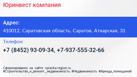 Юринвест, компания по адресу 410012, Саратовская область, Саратов, Аткарская, 31 в дальнейшем Организация, размещена в следующих категориях: