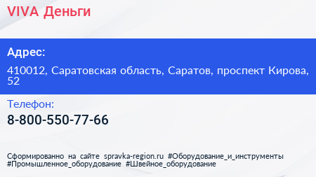 VIVA Деньги по адресу 410012, Саратовская область, Саратов, проспект Кирова, 52 в дальнейшем Организация, размещена в следующих категориях:
