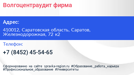 Волгоцентраудит, фирма по адресу 410012, Саратовская область, Саратов, Железнодорожная, 72 к2 в дальнейшем Организация, размещена в следующих категориях: