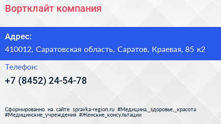 Вортклайт, компания по адресу 410012, Саратовская область, Саратов, Краевая, 85 к2 в дальнейшем Организация, размещена в следующих категориях:
