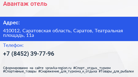 Авантаж, отель по адресу 410012, Саратовская область, Саратов, Театральная площадь, 11а в дальнейшем Организация, размещена в следующих категориях: