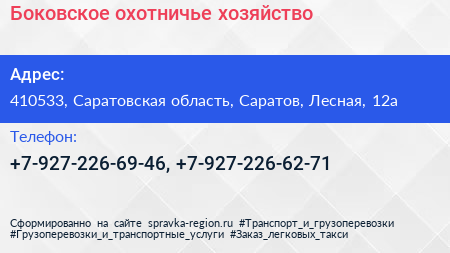 Боковское, охотничье хозяйство по адресу 410533, Саратовская область, Саратов, Лесная, 12а в дальнейшем Организация, размещена в следующих категориях: