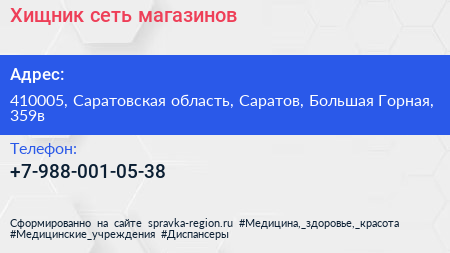 Хищник, сеть магазинов по адресу 410005, Саратовская область, Саратов, Большая Горная, 359в в дальнейшем Организация, размещена в следующих категориях: