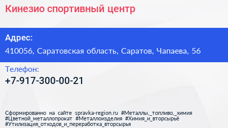 Кинезио, спортивный центр по адресу 410056, Саратовская область, Саратов, Чапаева, 56 в дальнейшем Организация, размещена в следующих категориях:
