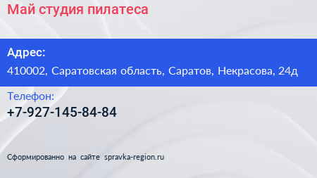Май, студия пилатеса по адресу 410002, Саратовская область, Саратов, Некрасова, 24д в дальнейшем Организация, размещена в следующих категориях: