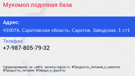Мукомол, лодочная база по адресу 410076, Саратовская область, Саратов, Заводская, 1 ст1 в дальнейшем Организация, размещена в следующих категориях: