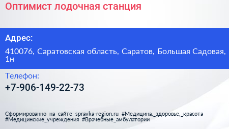 Оптимист, лодочная станция по адресу 410076, Саратовская область, Саратов, Большая Садовая, 1н в дальнейшем Организация, размещена в следующих категориях: