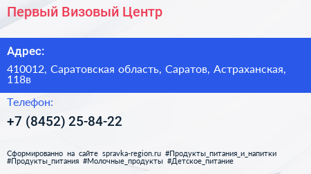 Первый Визовый Центр по адресу 410012, Саратовская область, Саратов, Астраханская, 118в в дальнейшем Организация, размещена в следующих категориях: