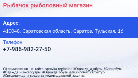 Рыбачок, рыболовный магазин по адресу 410048, Саратовская область, Саратов, Тульская, 16 в дальнейшем Организация, размещена в следующих категориях: