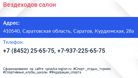 Вездеходов, салон по адресу 410540, Саратовская область, Саратов, Курдюмская, 28а в дальнейшем Организация, размещена в следующих категориях: