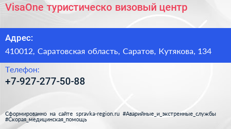 VisaOne, туристическо-визовый центр по адресу 410012, Саратовская область, Саратов, Кутякова, 134 в дальнейшем Организация, размещена в следующих категориях: