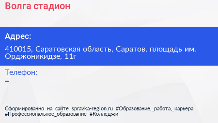 Волга, стадион по адресу 410015, Саратовская область, Саратов, площадь им. Орджоникидзе, 11г в дальнейшем Организация, размещена в следующих категориях: