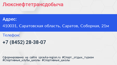 Люкснефтетрансдобыча по адресу 410031, Саратовская область, Саратов, Соборная, 21м в дальнейшем Организация, размещена в следующих категориях: