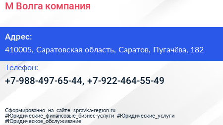 М-Волга, компания по адресу 410005, Саратовская область, Саратов, Пугачёва, 182 в дальнейшем Организация, размещена в следующих категориях: