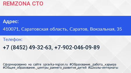 REMZONA, СТО по адресу 410071, Саратовская область, Саратов, Вокзальная, 35 в дальнейшем Организация, размещена в следующих категориях: