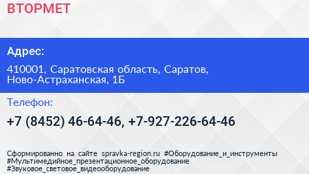 ВТОРМЕТ по адресу 410001, Саратовская область, Саратов, Ново-Астраханская, 1Б в дальнейшем Организация, размещена в следующих категориях: