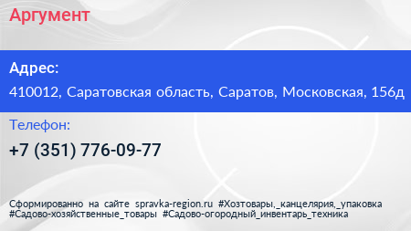 Аргумент по адресу 410012, Саратовская область, Саратов, Московская, 156д в дальнейшем Организация, размещена в следующих категориях: