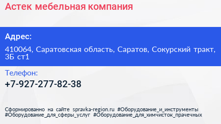 Астек, мебельная компания по адресу 410064, Саратовская область, Саратов, Сокурский тракт, 3Б ст1 в дальнейшем Организация, размещена в следующих категориях: