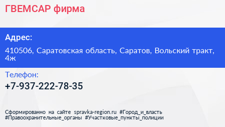 ГВЕМСАР, фирма по адресу 410506, Саратовская область, Саратов, Вольский тракт, 4ж в дальнейшем Организация, размещена в следующих категориях: