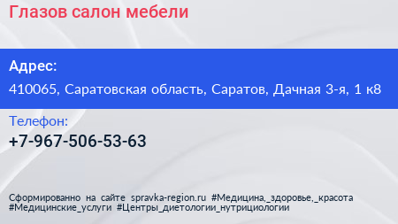 Глазов, салон мебели по адресу 410065, Саратовская область, Саратов, Дачная 3-я, 1 к8 в дальнейшем Организация, размещена в следующих категориях: