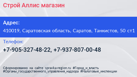 Строй-Аллис, магазин по адресу 410019, Саратовская область, Саратов, Танкистов, 50 ст1 в дальнейшем Организация, размещена в следующих категориях:
