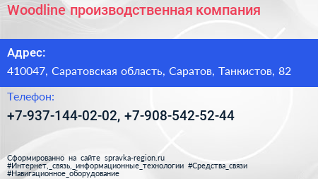 Woodline, производственная компания по адресу 410047, Саратовская область, Саратов, Танкистов, 82 в дальнейшем Организация, размещена в следующих категориях: