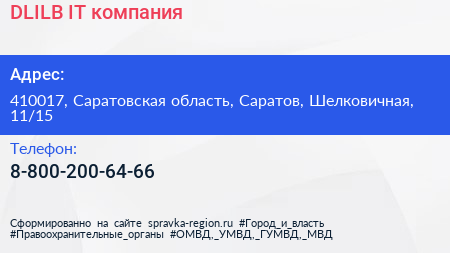 DLILB, IT-компания по адресу 410017, Саратовская область, Саратов, Шелковичная, 11/15 в дальнейшем Организация, размещена в следующих категориях: