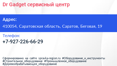 Dr. Gadget, сервисный центр по адресу 410054, Саратовская область, Саратов, Беговая, 19 в дальнейшем Организация, размещена в следующих категориях: