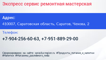 Экспресс сервис, ремонтная мастерская по адресу 410007, Саратовская область, Саратов, Чехова, 2 в дальнейшем Организация, размещена в следующих категориях: