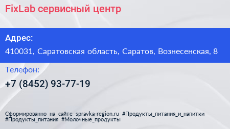 FixLab, сервисный центр по адресу 410031, Саратовская область, Саратов, Вознесенская, 8 в дальнейшем Организация, размещена в следующих категориях: