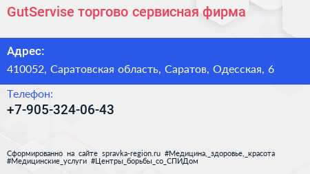 GutServise, торгово-сервисная фирма по адресу 410052, Саратовская область, Саратов, Одесская, 6 в дальнейшем Организация, размещена в следующих категориях:
