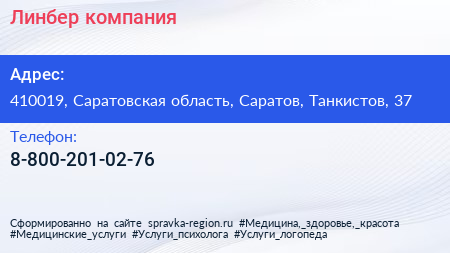 Линбер, компания по адресу 410019, Саратовская область, Саратов, Танкистов, 37 в дальнейшем Организация, размещена в следующих категориях: