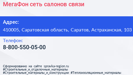 МегаФон, сеть салонов связи по адресу 410005, Саратовская область, Саратов, Астраханская, 103 в дальнейшем Организация, размещена в следующих категориях: